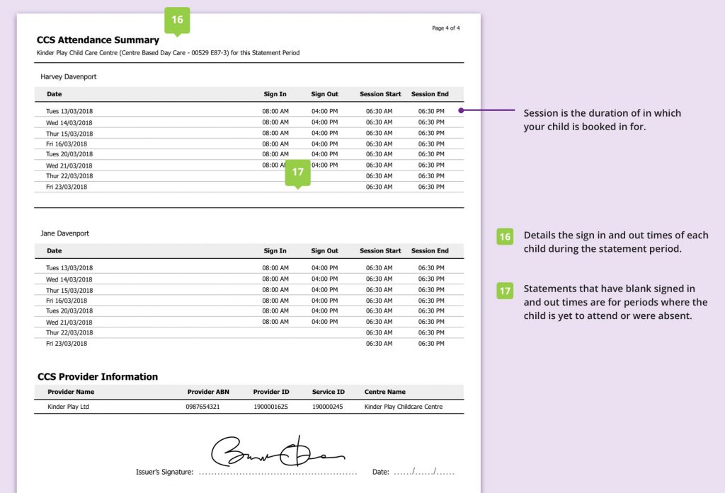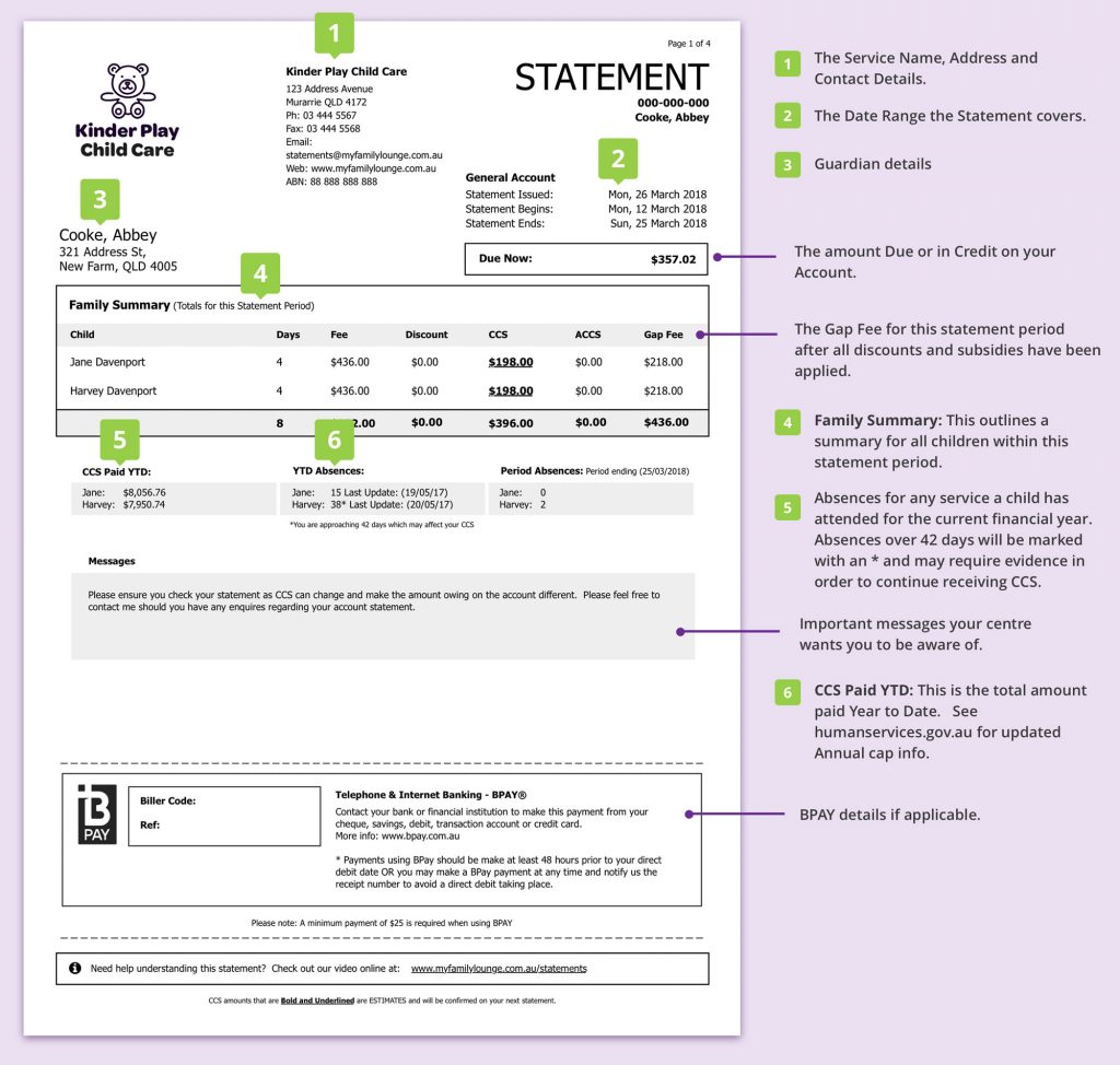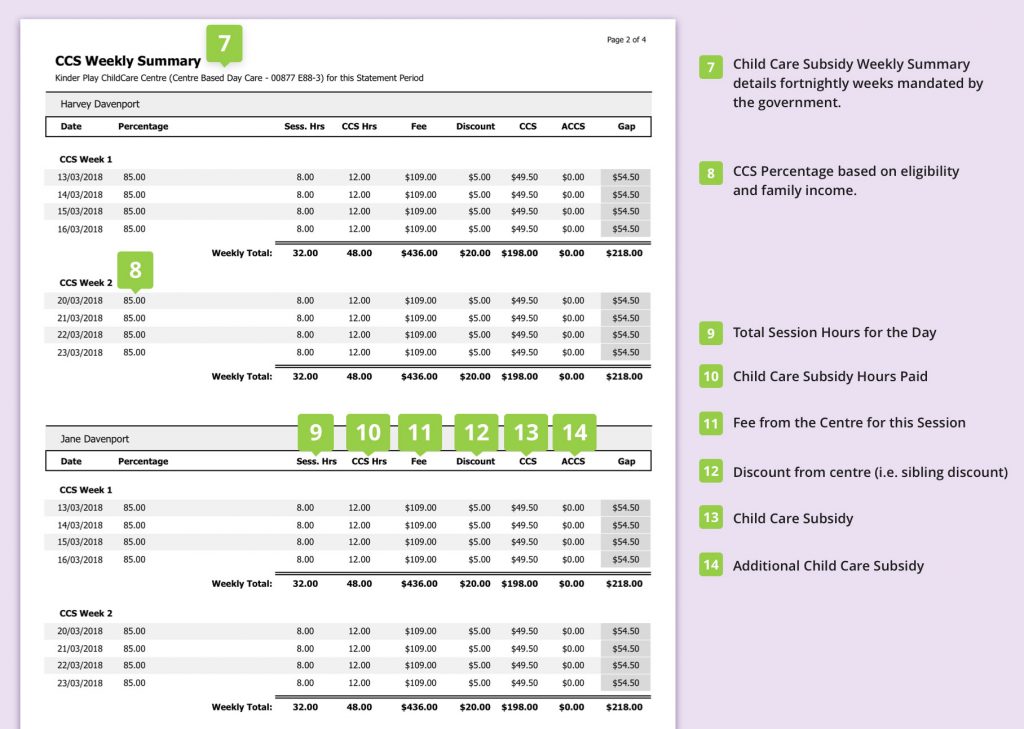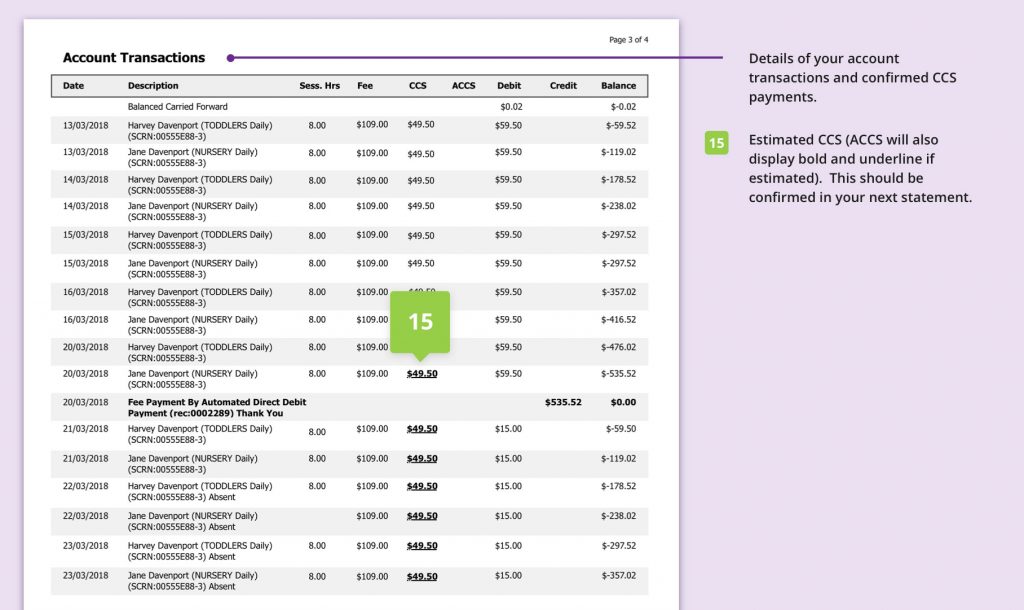 It’s also important to note that fees payable are based on your entitlements that are linked to your account and statements are generated automatically by our software provider, and our software integrates with the CCS platform at Services Australia/Centrelink.